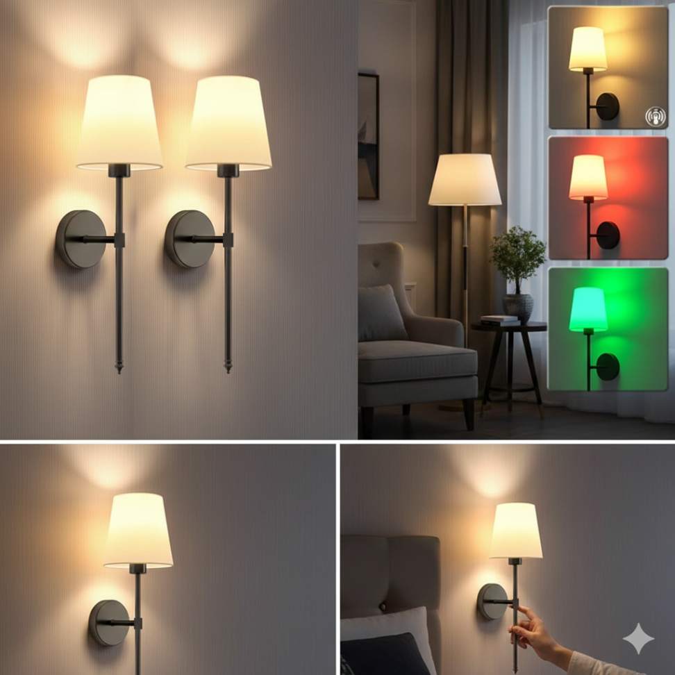 Com acabamento refinado e opções de cor do abajur em Preto (1 peça), Preto (2 pcs) e Ouro (2 peças), essa luminária de parede se adapta facilmente a diferentes estilos de decoração, desde o moderno e minimalista até o clássico e elegante. É perfeita para salas, quartos, corredores, escadas, cabeceiras de cama, escritórios, lavabos e até ambientes comerciais.